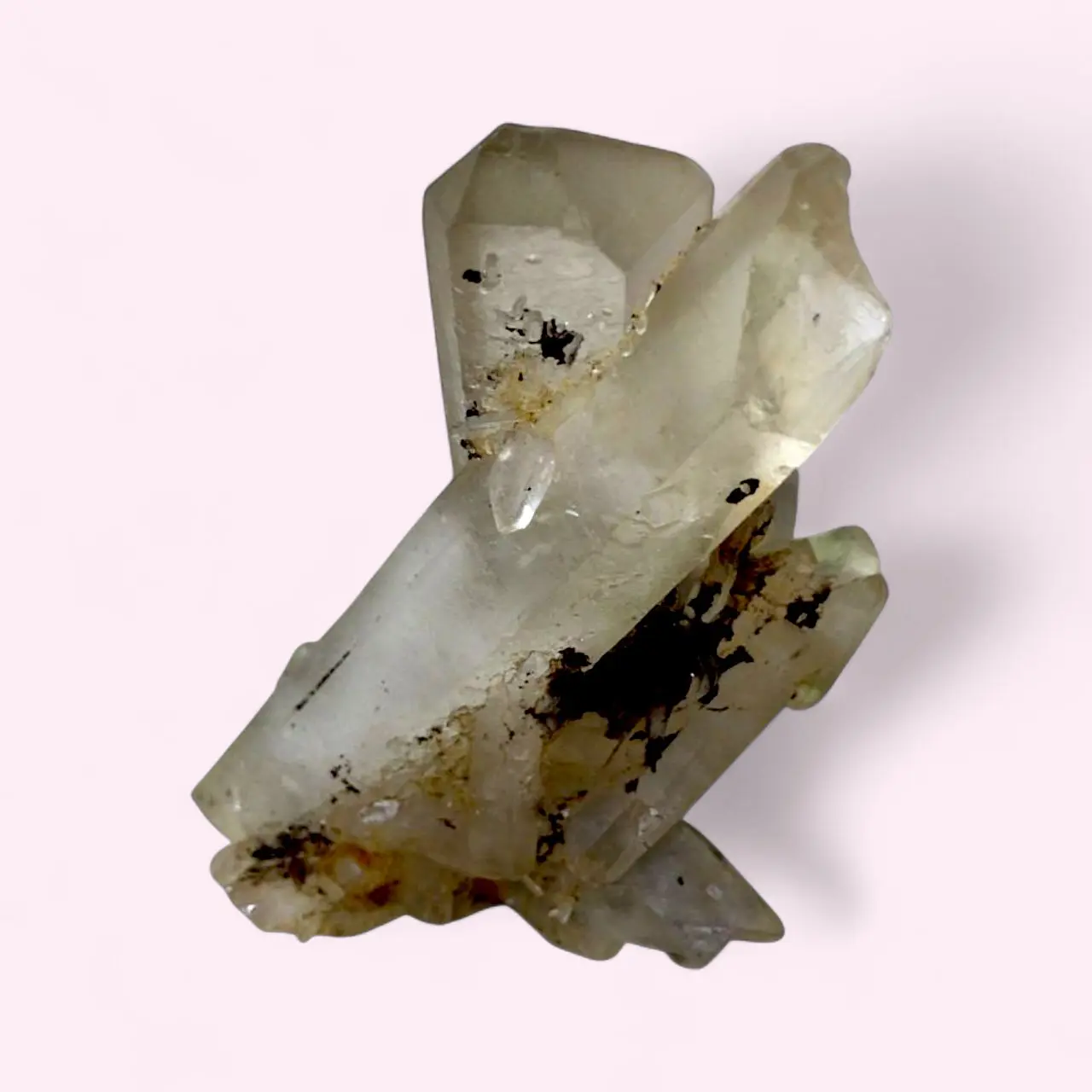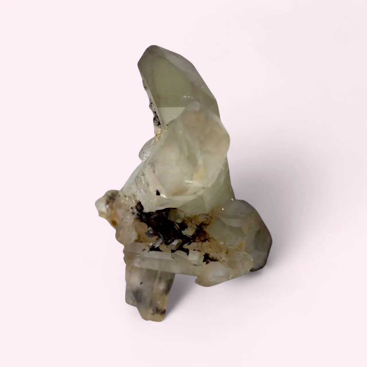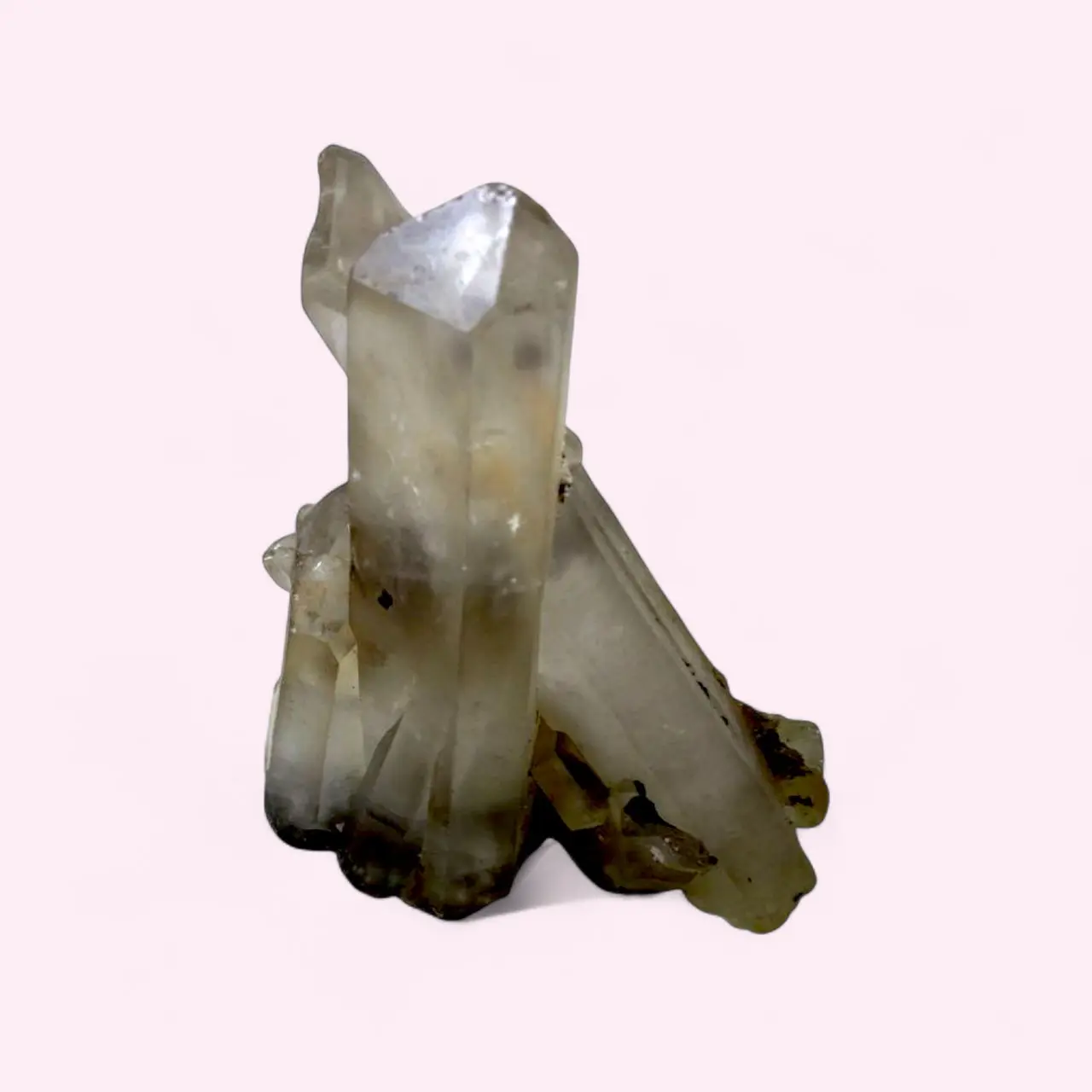 Experience the natural elegance and powerful dual energy of the Grounded Light Clear Quartz Cluster with Smoky Inclusions. This raw formation combines the high vibrations of clear quartz with the earthy strength of smoky quartz, creating a crystal that cleanses, protects, and stabilizes energy.
