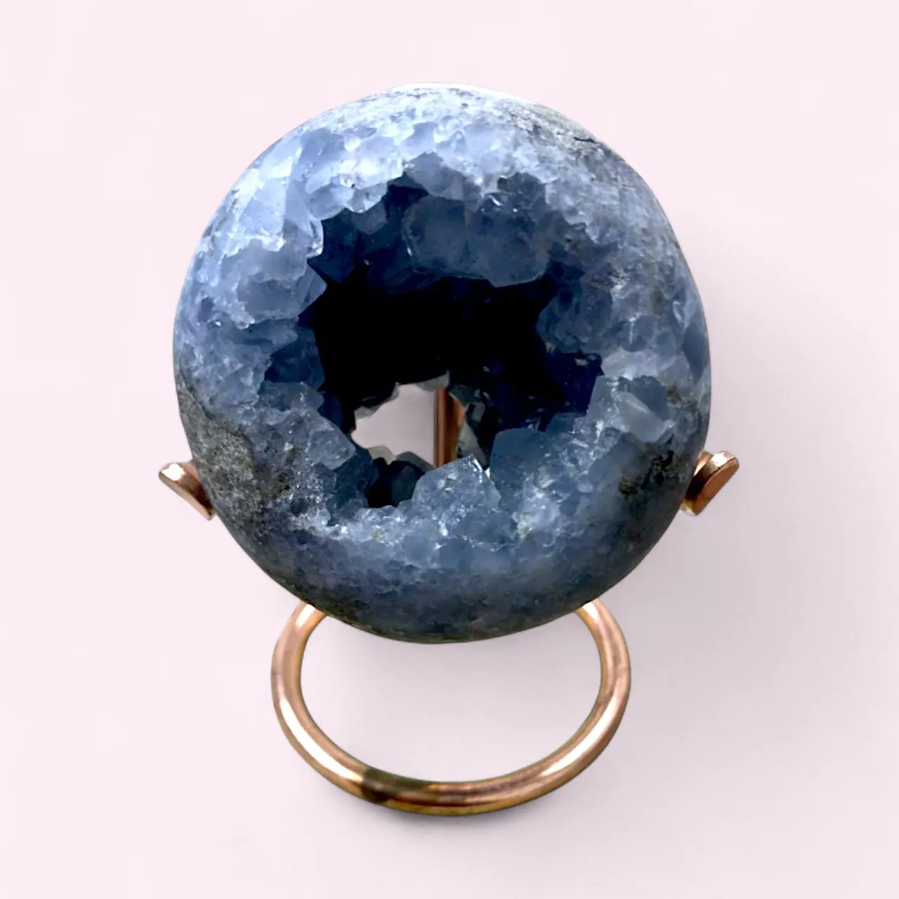 Invite the soothing energy of the sky into your home with this luxurious Druzy Celestite on Stand — a masterpiece of nature that balances beauty and serenity in perfect harmony.